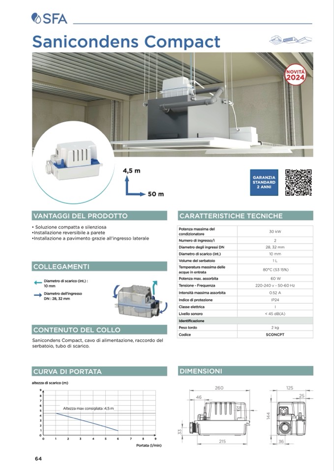 Sanicondens Compact, cavo di alimentazione, raccordo del