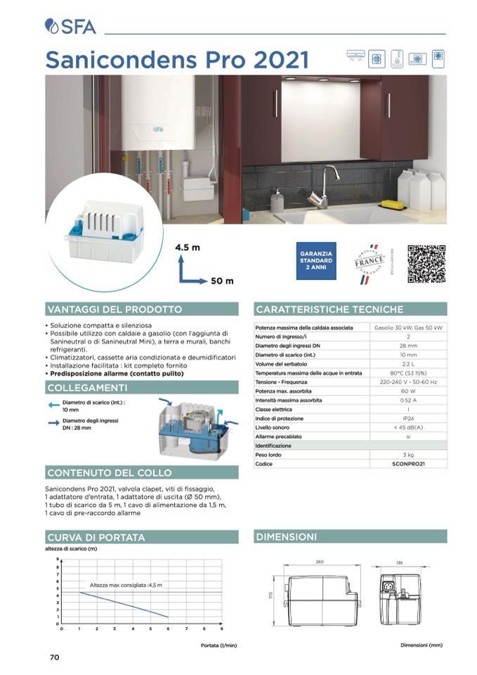 Sanicondens Pro 2021, valvola clapet, viti di fissaggio,