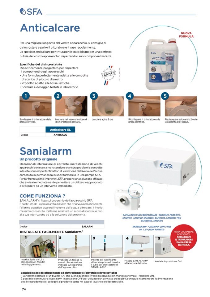 SANIALARM PUÒ EQUIPAGGIARE I SEGUENTI PRODOTTI: