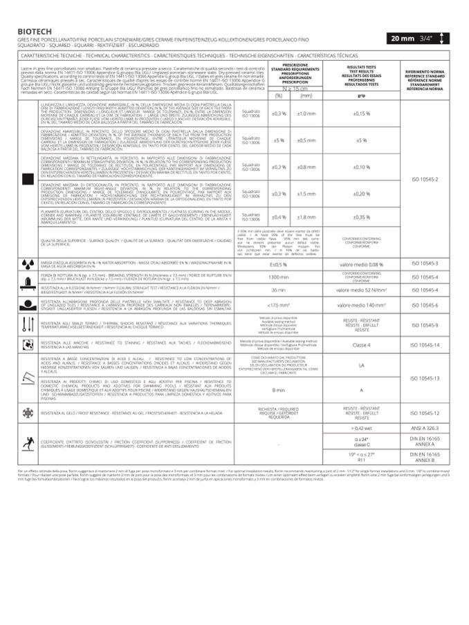 CARATTERISTICHE TECNICHE - TECHNICAL CHARACTERISTICS - CARACTERISTIQUES TECHNIQUES - TECHNISCHE EIGENSCHAFTEN - CARACTERÍSTICAS TÉCNICA