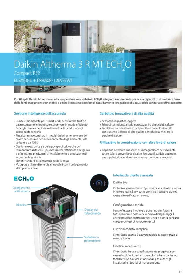L'unità split Daikin Altherma ad alta temperatura con serbatoio ECH