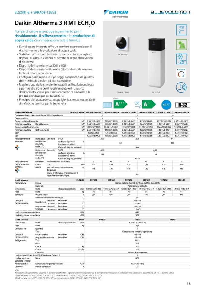 (2) Raffrescamento Ta 35°C - LWE 7°C (DT = 5°C); riscaldamento Ta BS/BU -7°C/6°C - LWC 35°C (DT = 5°C).