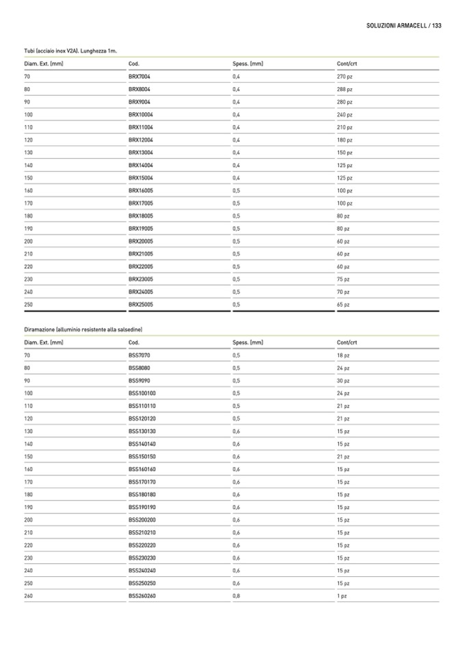 Tubi (acciaio inox V2A). Lunghezza 1m.