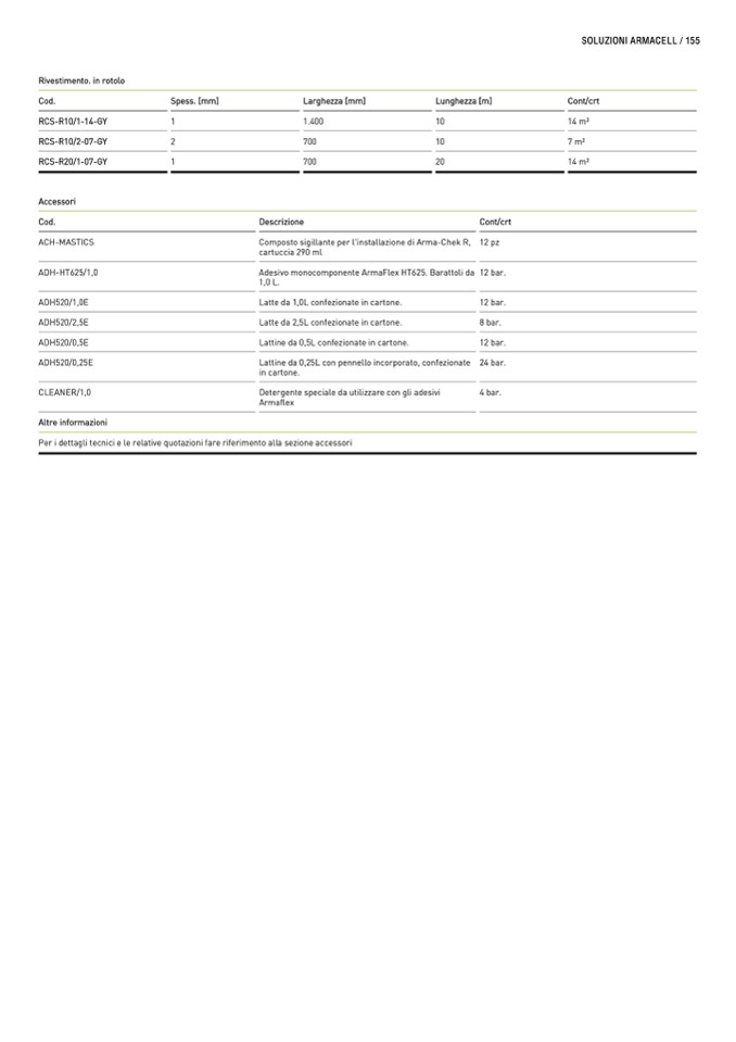 Per i dettagli tecnici e le relative quotazioni fare riferimento alla sezione accessori