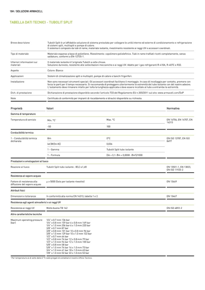 Dichiarazione di prestazione disponibile secondo l'articolo 7(3) del Regolamento EU n.305/2011 sul sito: www.armacell.com/DoP