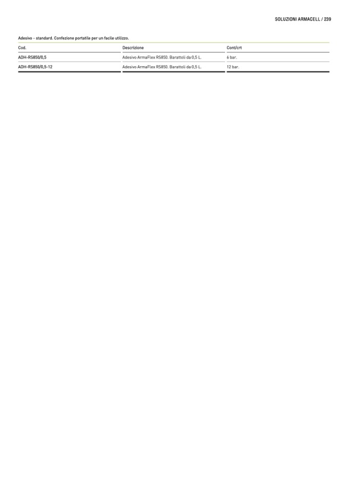 Adesivo ArmaFlex RS850. Barattoli da 0,5 L.