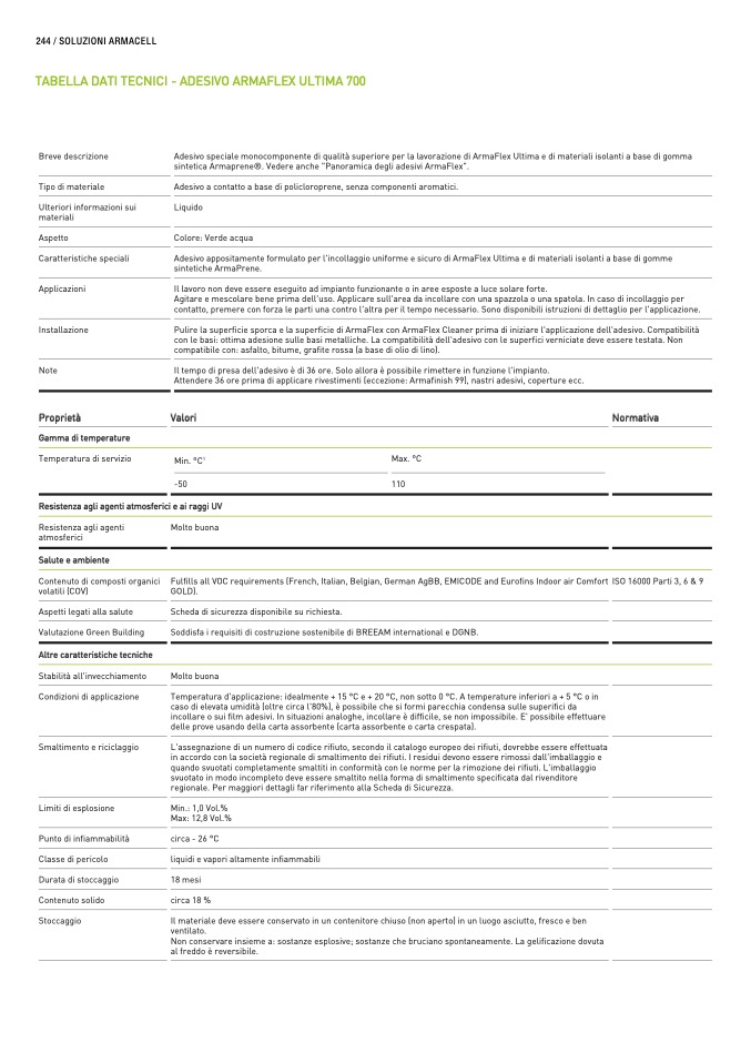 sintetica Armaprene®. Vedere anche "Panoramica degli adesivi ArmaFlex".