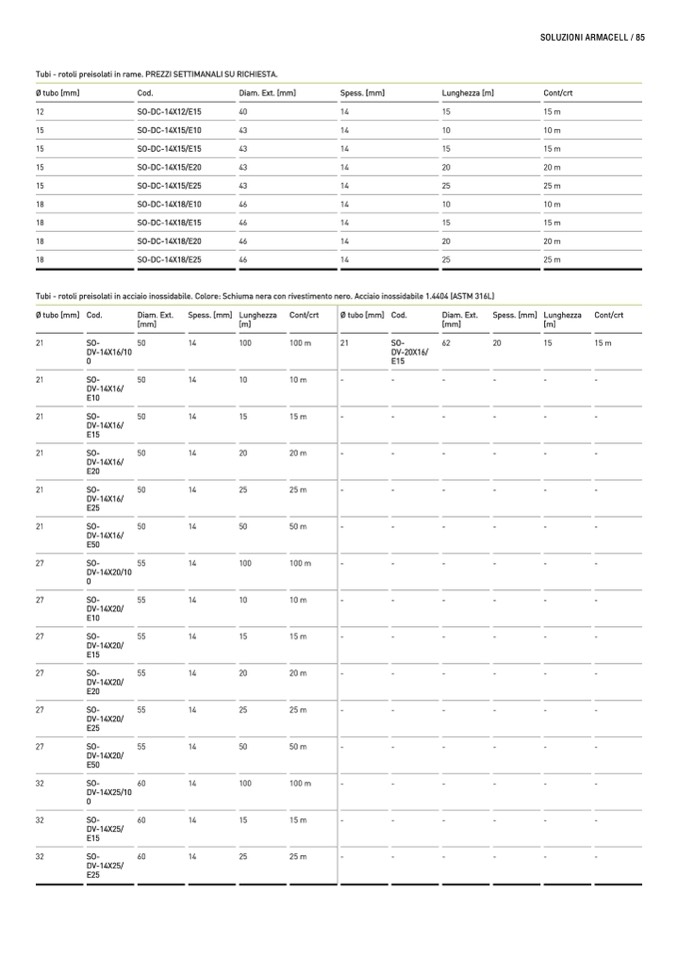 Tubi - rotoli preisolati in rame. PREZZI SETTIMANALI SU RICHIESTA.
