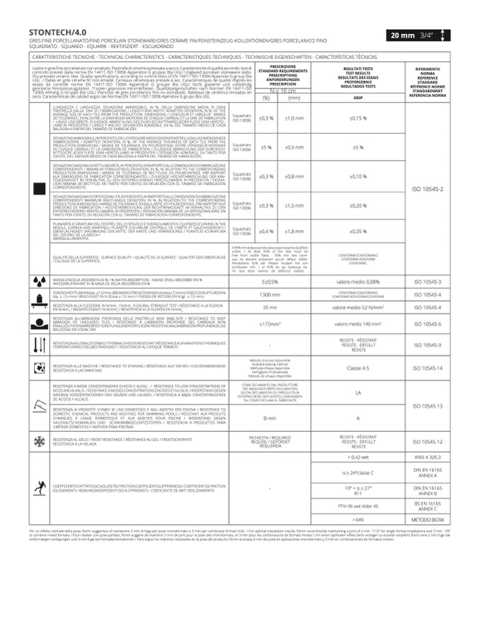 CARATTERISTICHE TECNICHE - TECHNICAL CHARACTERISTICS - CARACTERISTIQUES TECHNIQUES - TECHNISCHE EIGENSCHAFTEN - CARACTERÍSTICAS TÉCNICA