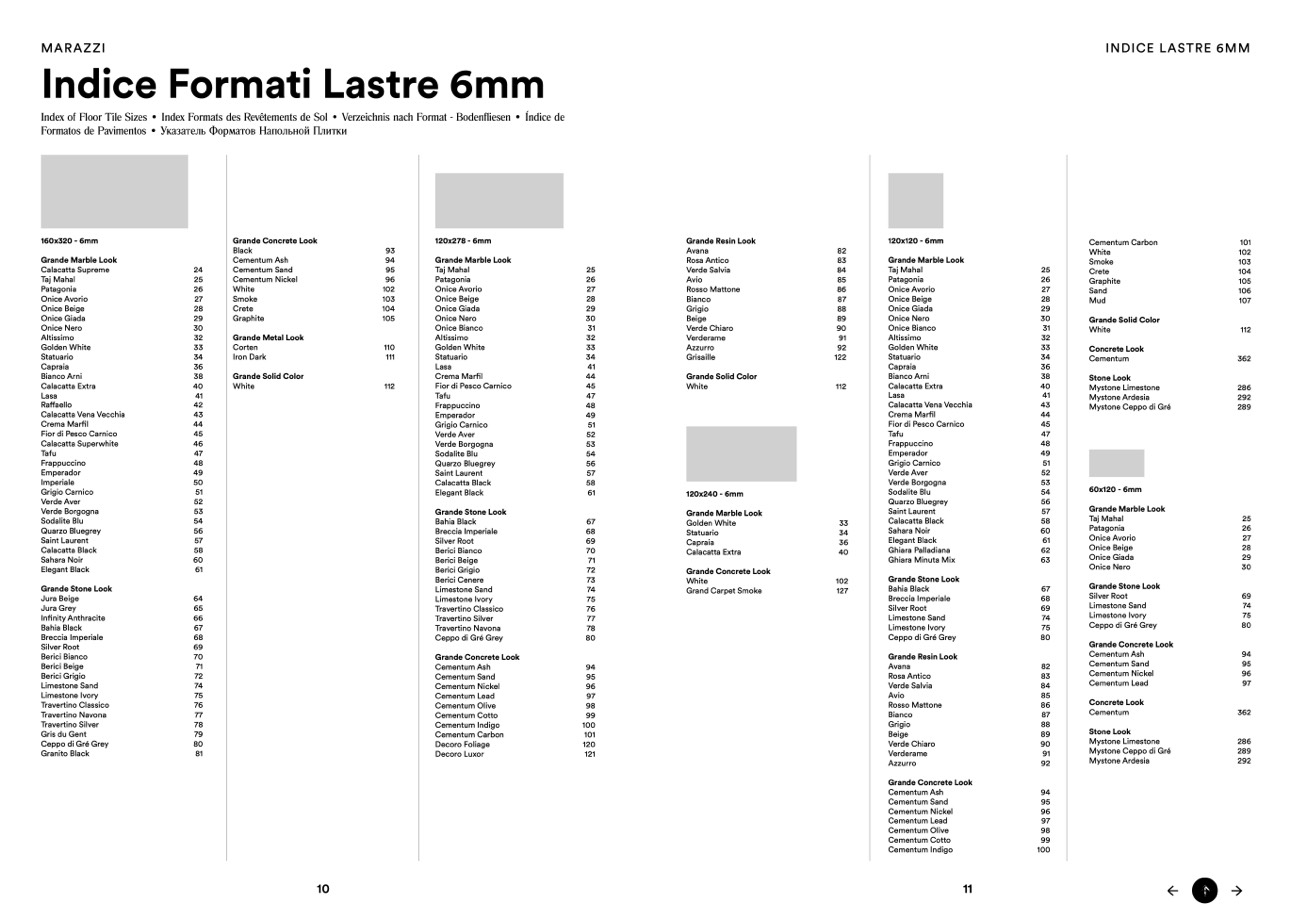 Index of Floor Tile Sizes • Index Formats des Revêtements de Sol • Verzeichnis nach Format - Bodenfliesen • Índice de