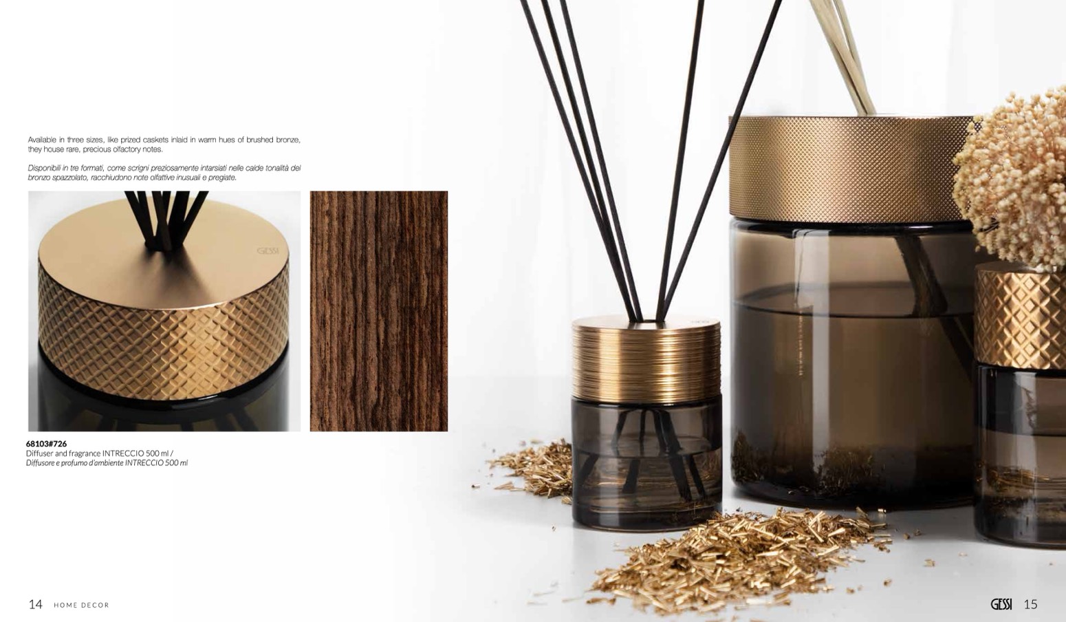 bronzo spazzolato, racchiudono note olfattive inusuali e pregiate.