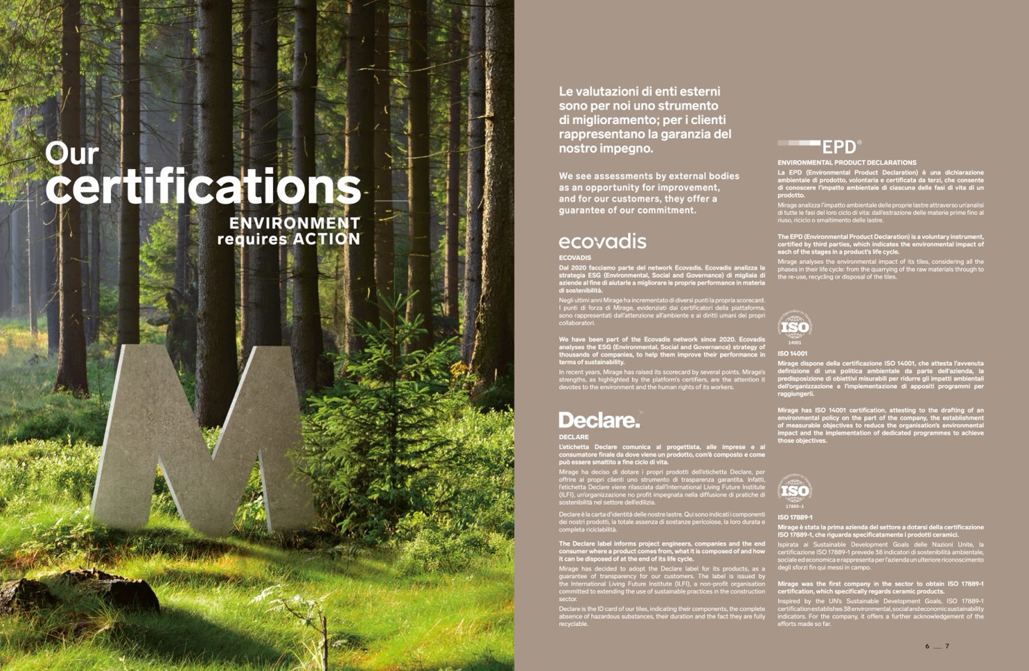 Mirage dispone della certificazione ISO 14001, che attesta l’avvenuta
