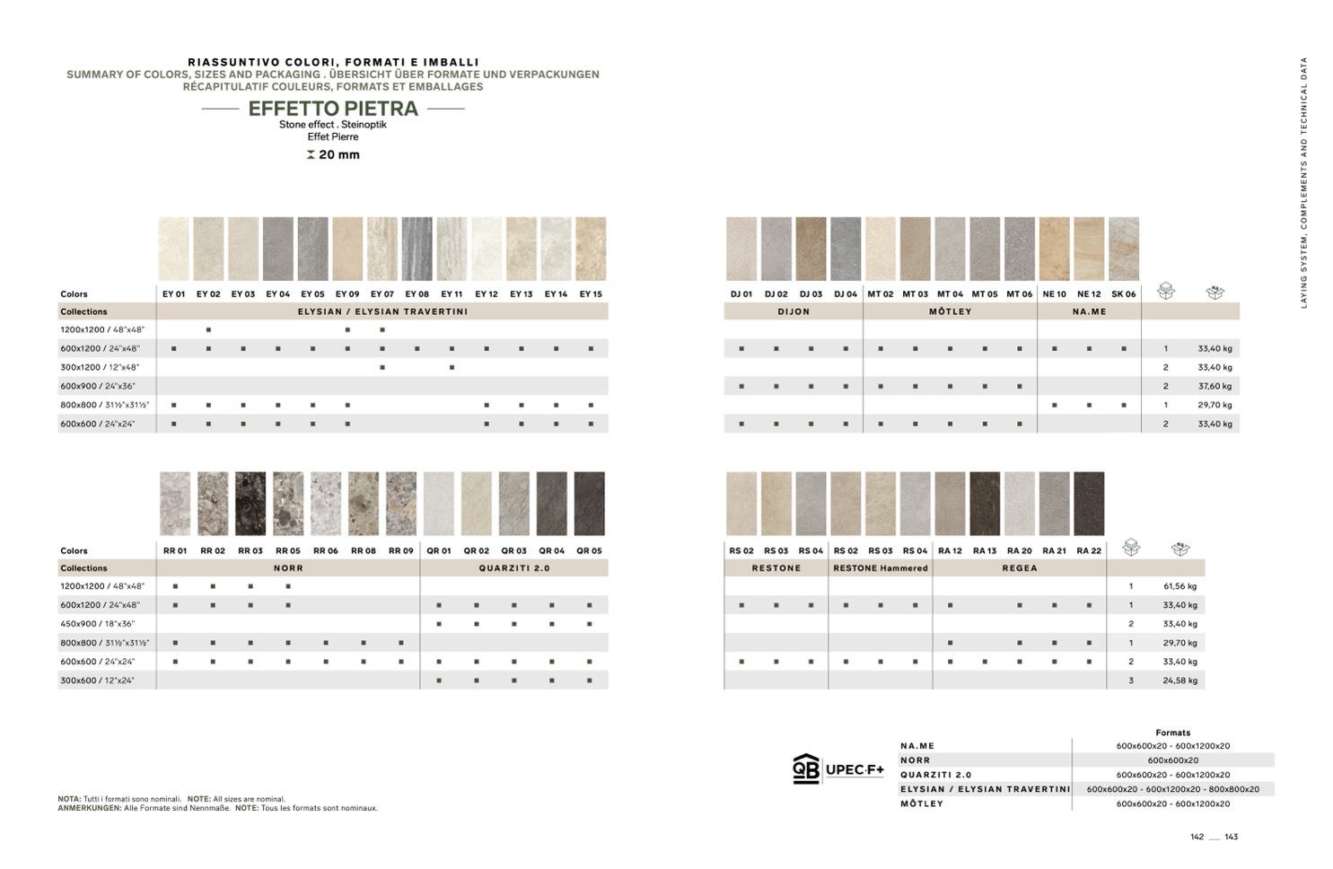600x600x20 - 600x1200x20 - 800x800x20
