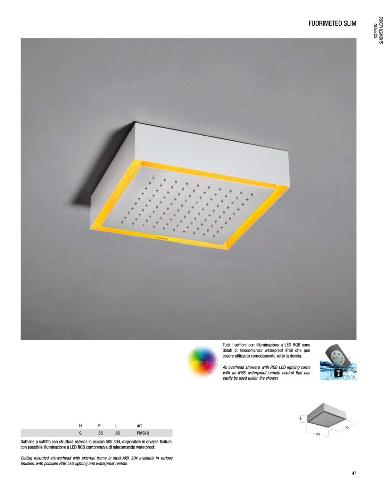 All overhead showers with RGB LED lighting come