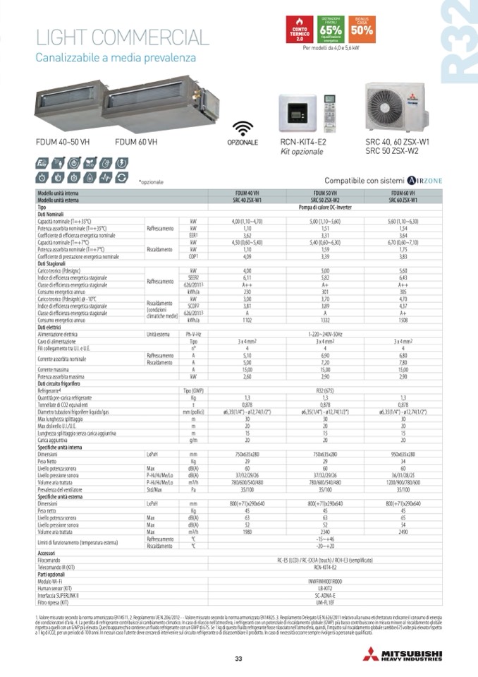 1. Valore misurato secondo la norma armonizzata EN14511. 2. Regolamento UE N.206/2012 - - Valore misurato secondo la norma armonizzata EN14825. 3. Regolamento Delegato UE N.626/2011 relativo alla nuova etichettatura indicante il consumo di energia