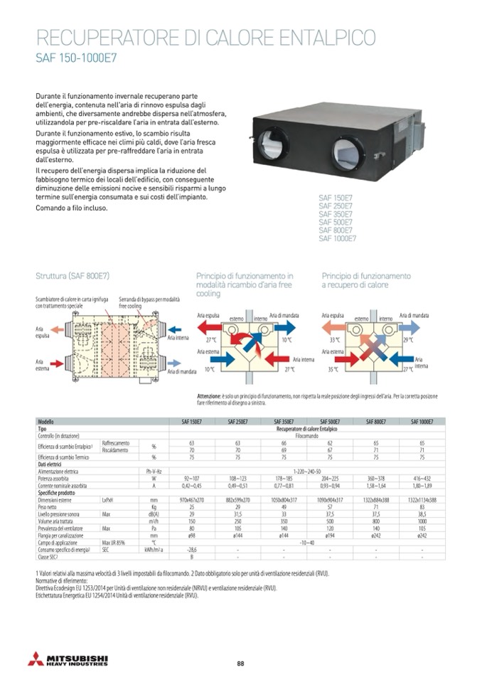 1 Valori relativi alla massima velocità di 3 livelli impostabili da filocomando. 2 Dato obbligatorio solo per unità di ventilazione residenziali (RVU).