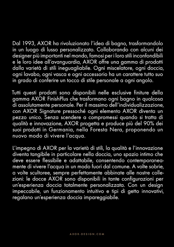 Dal 1993, AXOR ha rivoluzionato l’idea di bagno, trasformandol