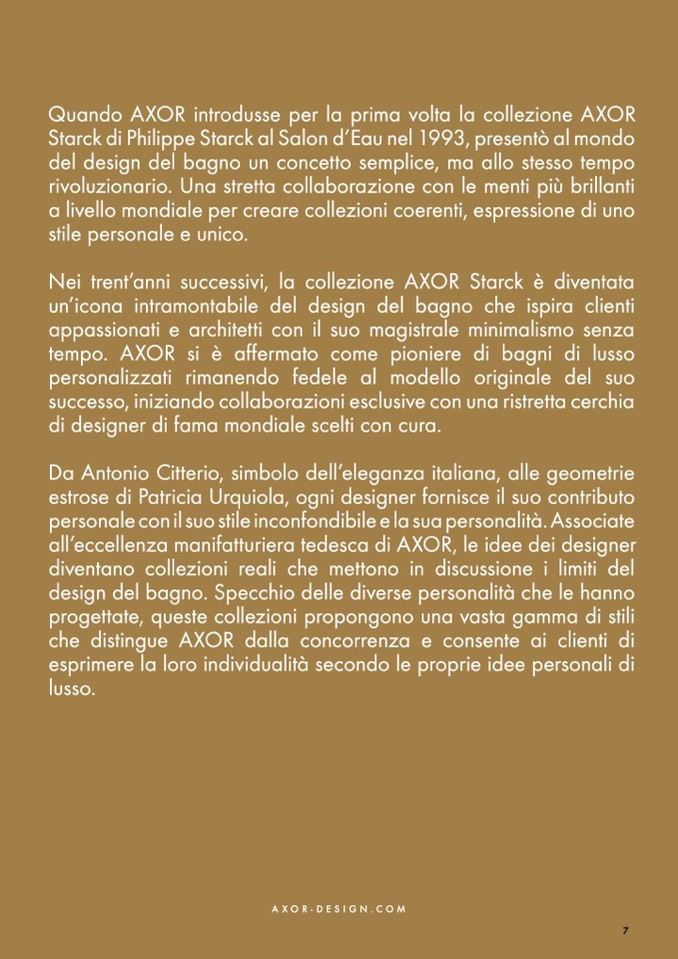 tempo. AXOR si è affermato come pioniere di bagni di luss