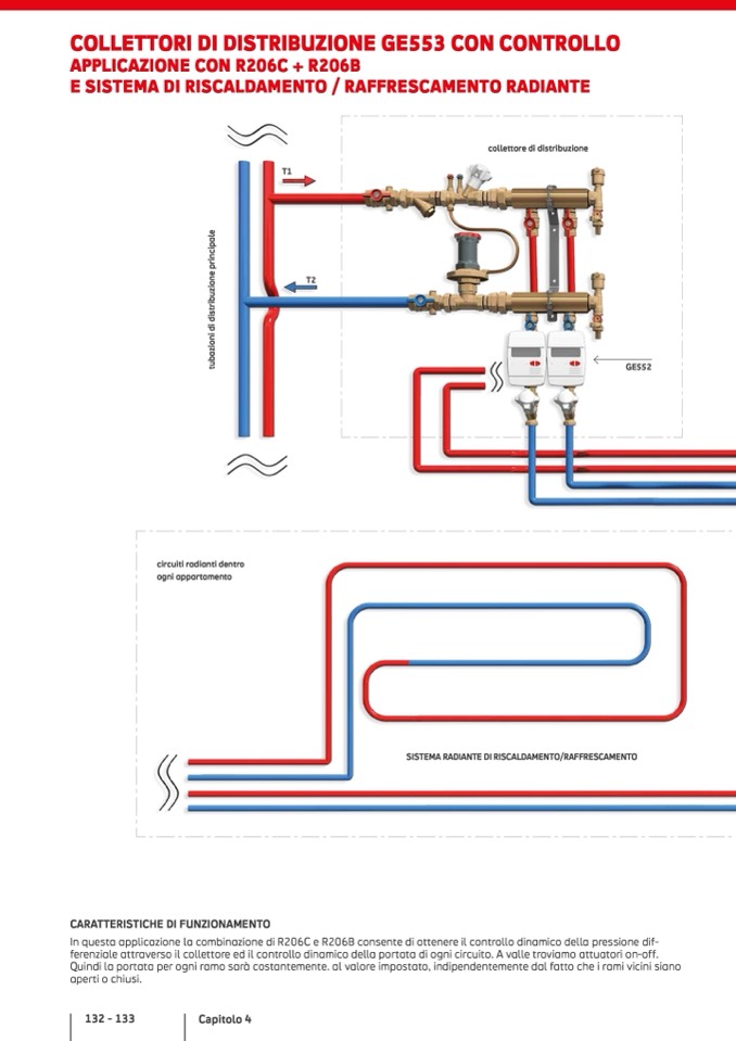 ferenziale attraverso il collettore ed il controllo dinamico della portata di ogni circuito. A valle troviamo attuatori on-off.
