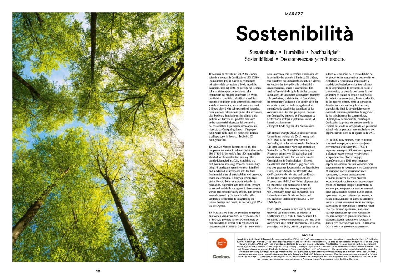 I prodotti autodichiarati di Marazzi Group sono classificati “Red List Free”, ovvero non contengono ingredienti presenti nella “Red List” del Living
