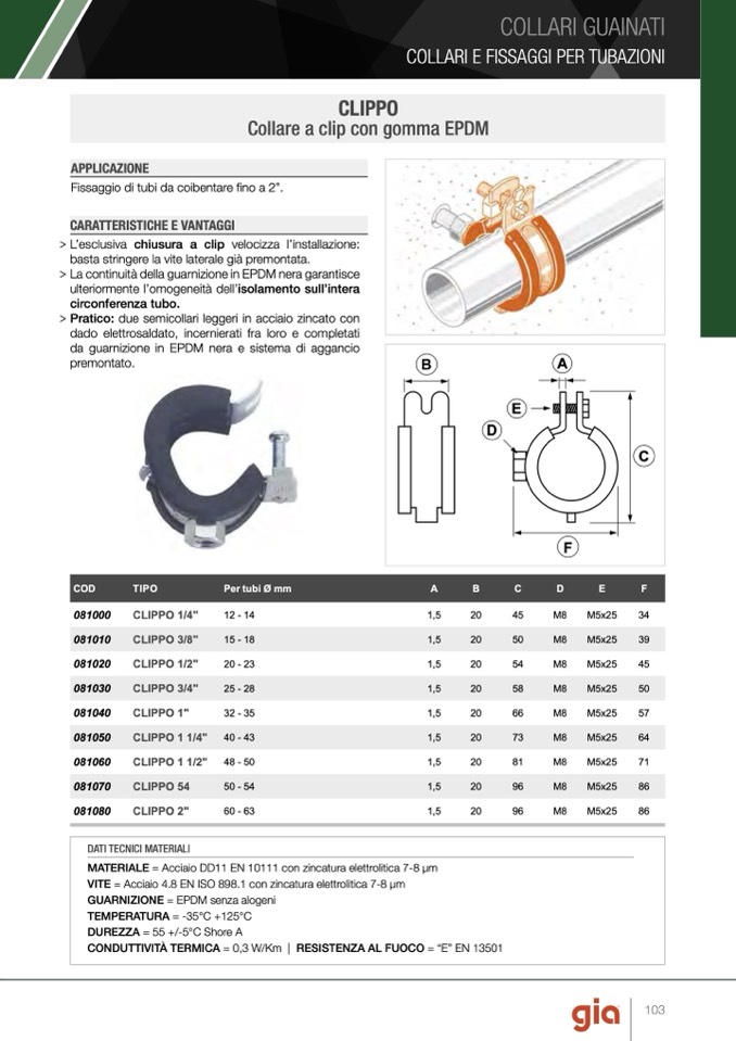 Collare a clip con gomma EPDM