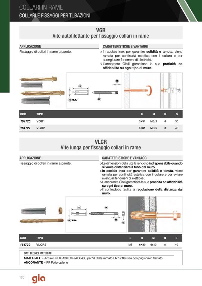 MATERIALE = Acciaio INOX AISI 304 (AISI 430 per VLCR6) ramato EN 12164 vite con prigioniero filettato