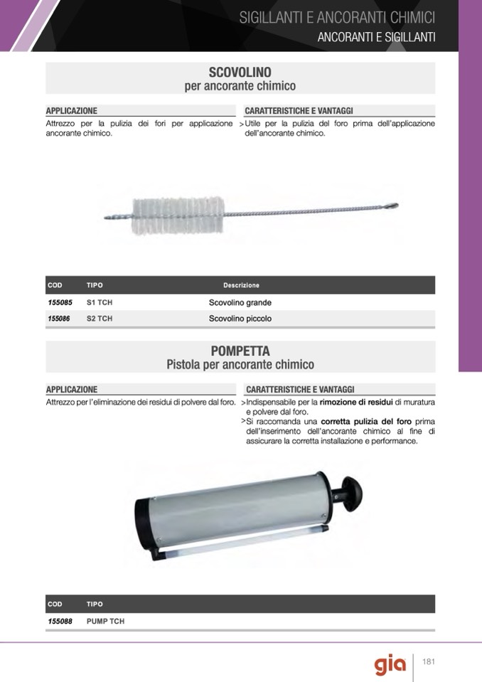 Attrezzo per la pulizia dei fori per applicazione >Utile per la pulizia del foro prima dell’applicazione
