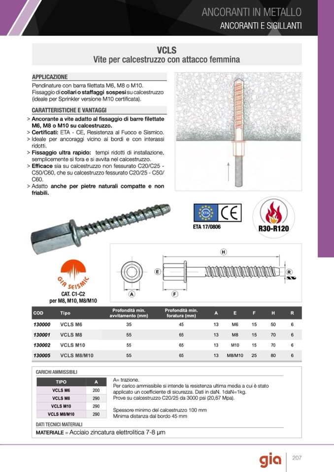 M6, M8 o M10 su calcestruzzo.