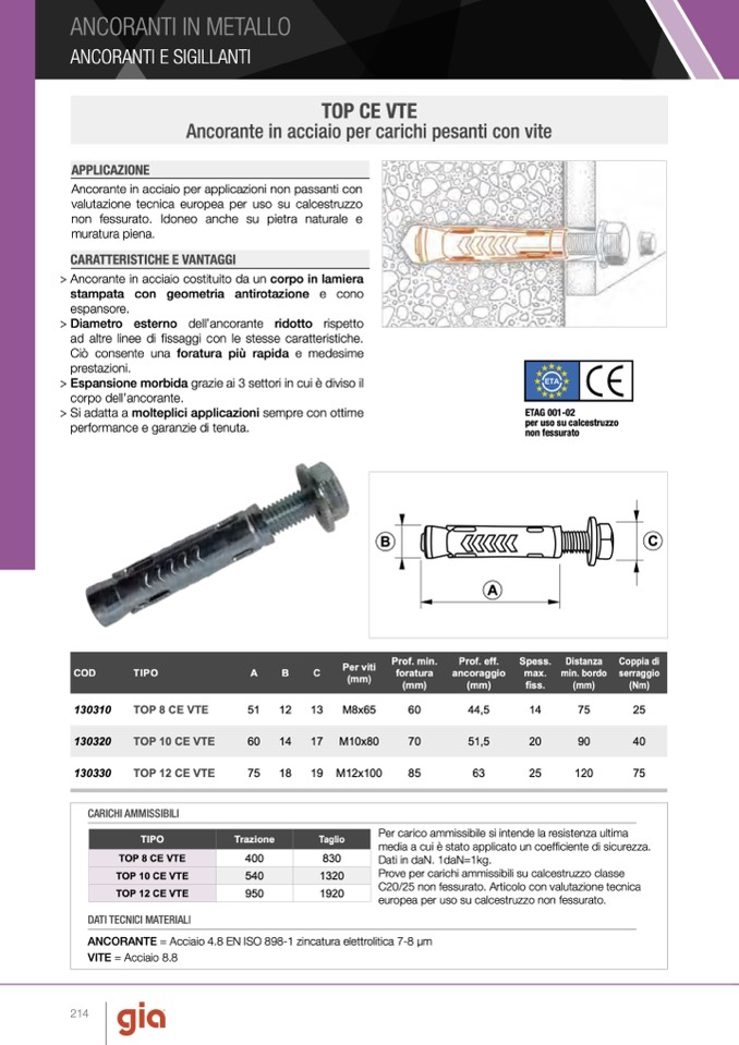 valutazione tecnica europea per uso su calcestruzzo