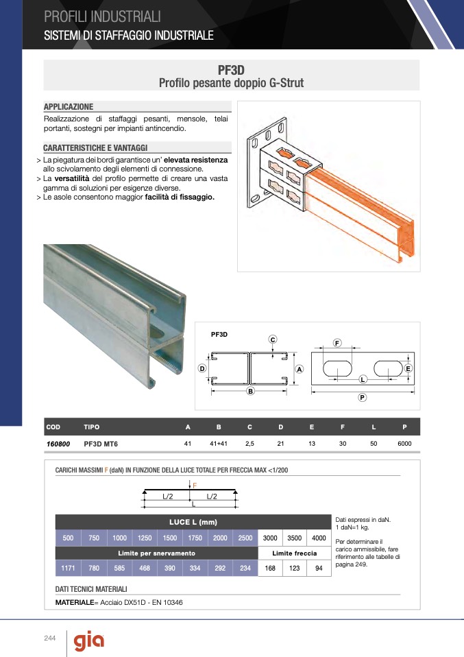 CARICHI MASSIMI F (daN) IN FUNZIONE DELLA LUCE TOTALE PER FRECCIA MAX <1/200