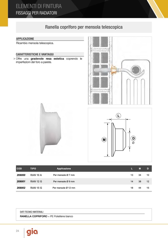 RANELLA COPRIFORO = PE Polietilene bianco
