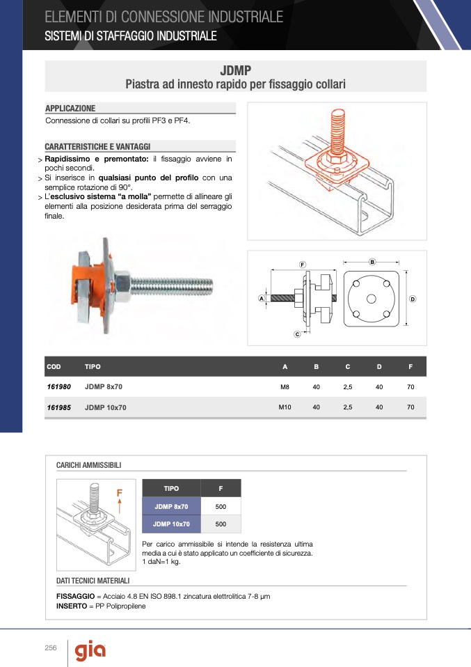 Connessione di collari su profili PF3 e PF4.