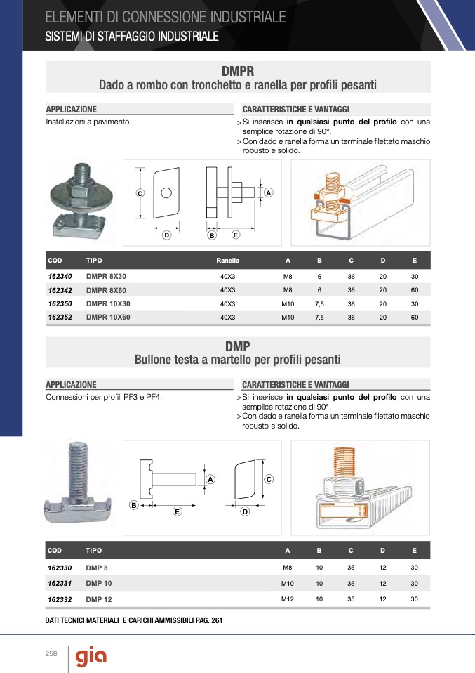 DATI TECNICI MATERIALI E CARICHI AMMISSIBILI PAG. 261