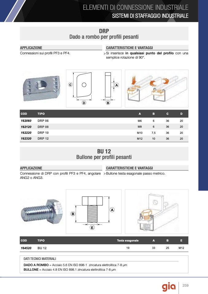 Connessione di DRP con profili PF3 e PF4, angolare