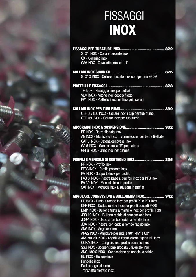 FISSAGGI PER TUBATURE INOX.............................................. 322