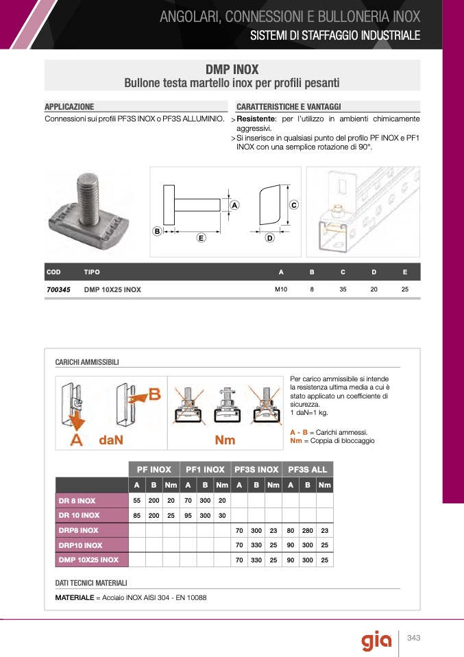 ConnessionisuiprofiliPF3SINOXoPF3SALLUMINIO. >Resistente: per l’utilizzo in ambienti chimicamente