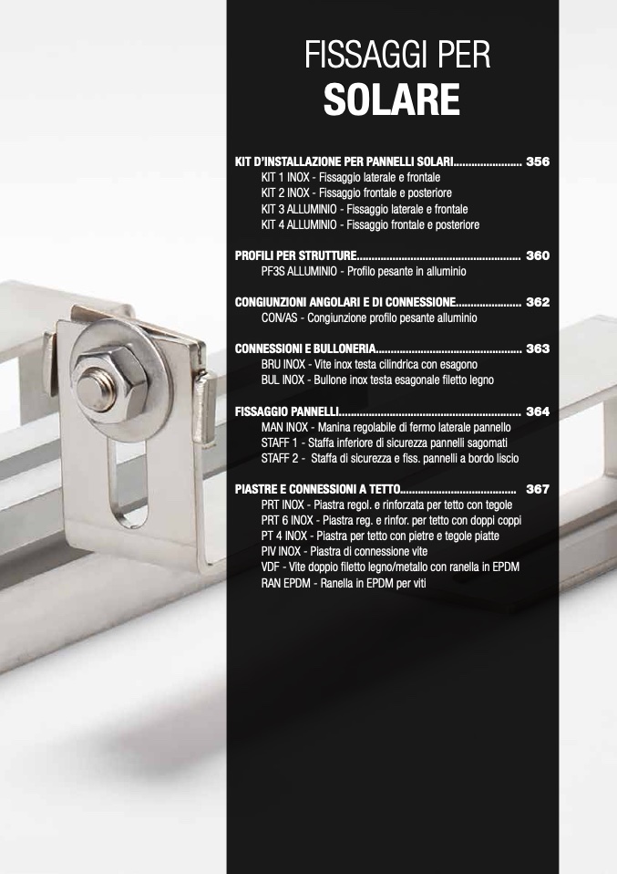 KIT D’INSTALLAZIONE PER PANNELLI SOLARI....................... 356