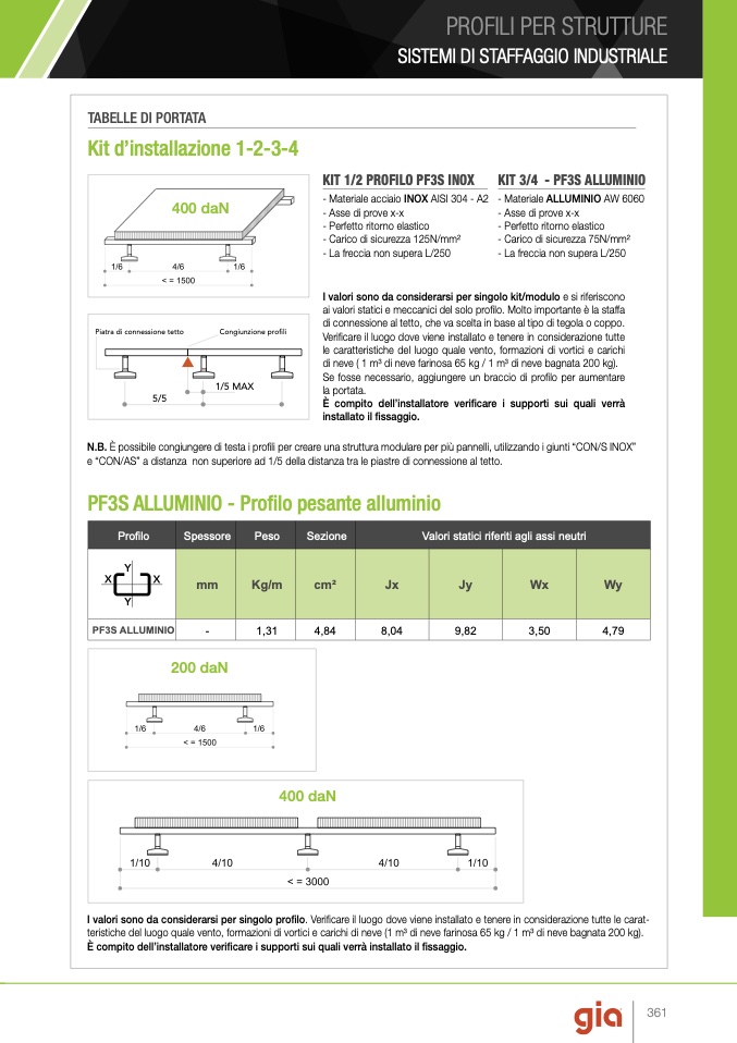 ai valori statici e meccanici del solo profilo. Molto importante è la staffa