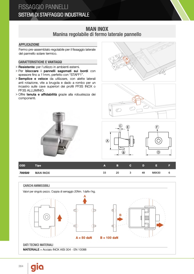 Valori per singolo pezzo. Coppia di serraggio 20Nm. 1daN=1kg.