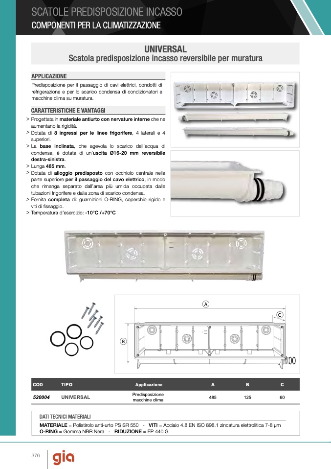 MATERIALE = Polistirolo anti-urto PS SR 550 - VITI = Acciaio 4.8 EN ISO 898.1 zincatura elettrolitica 7-8 μm