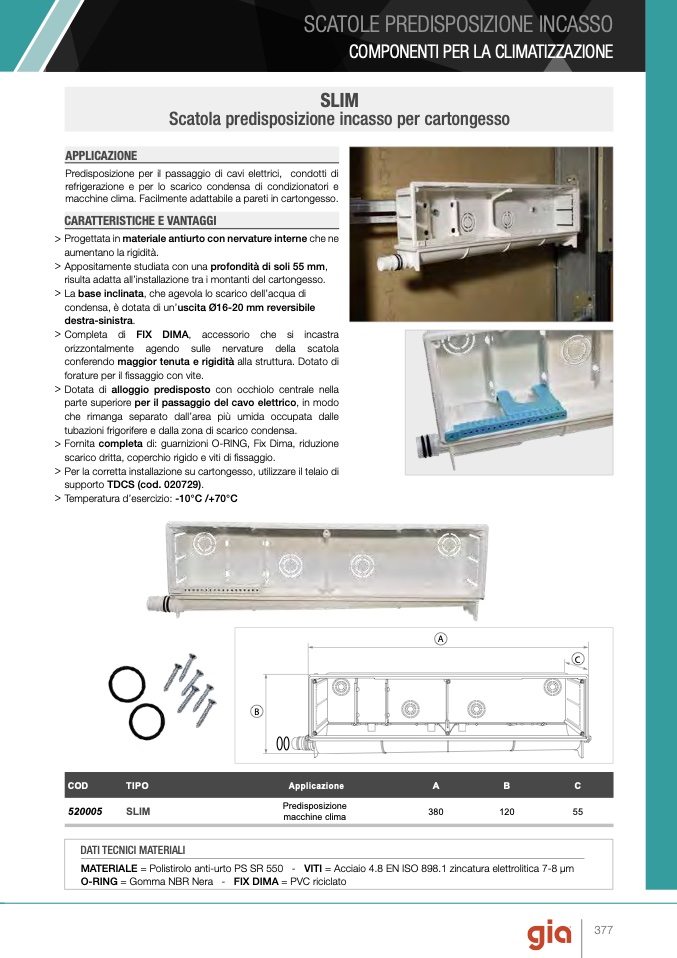 MATERIALE = Polistirolo anti-urto PS SR 550 - VITI = Acciaio 4.8 EN ISO 898.1 zincatura elettrolitica 7-8 μm