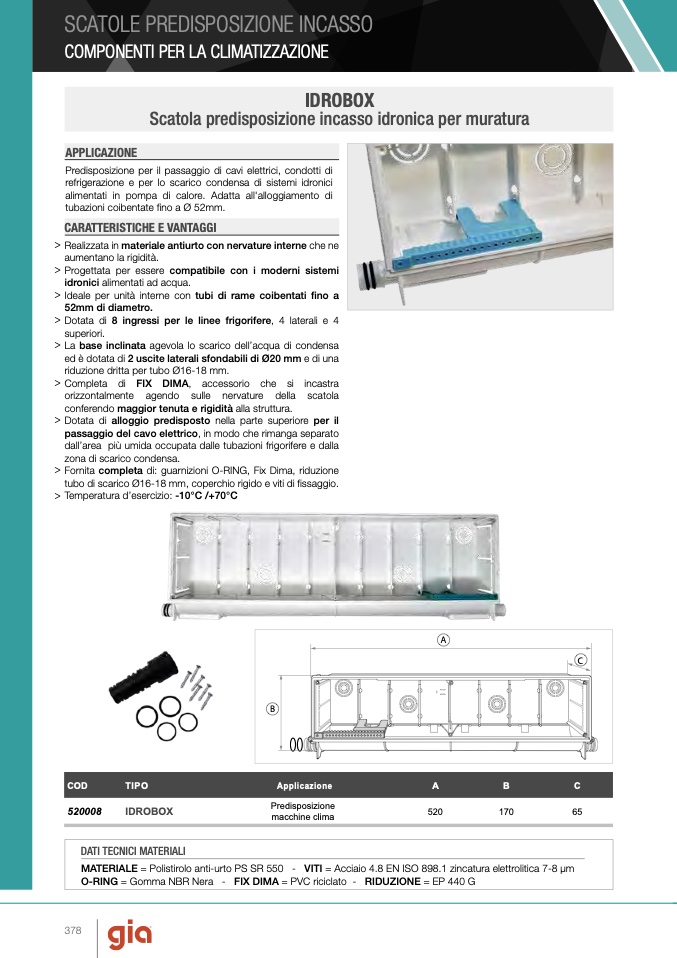O-RING = Gomma NBR Nera - FIX DIMA = PVC riciclato - RIDUZIONE = EP 440 G