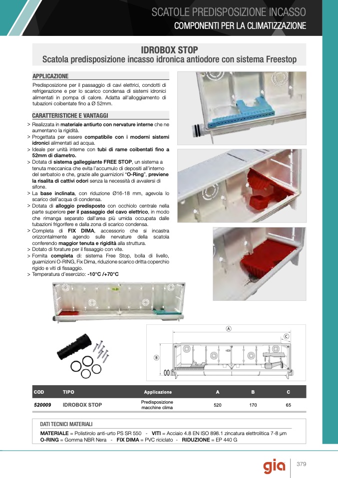 O-RING = Gomma NBR Nera - FIX DIMA = PVC riciclato - RIDUZIONE = EP 440 G