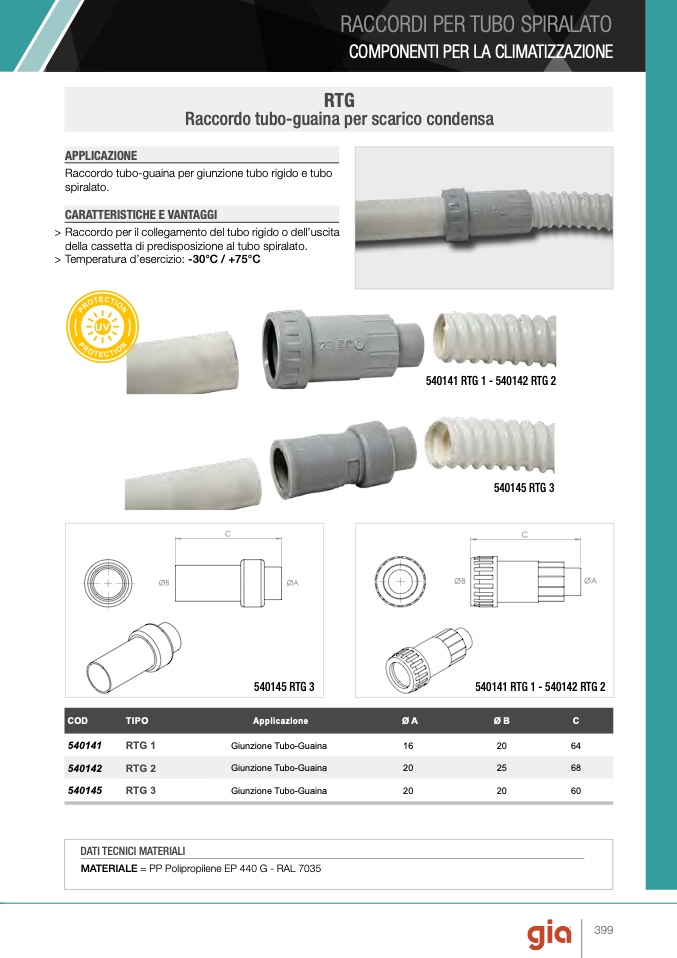 MATERIALE = PP Polipropilene EP 440 G - RAL 7035