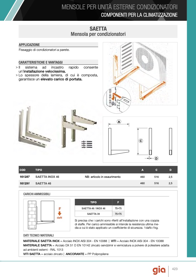 MATERIALE SAETTA = Acciaio DX 51 D EN 10142 zincato sendzimir e verniciatura a polvere di poliestere adatta
