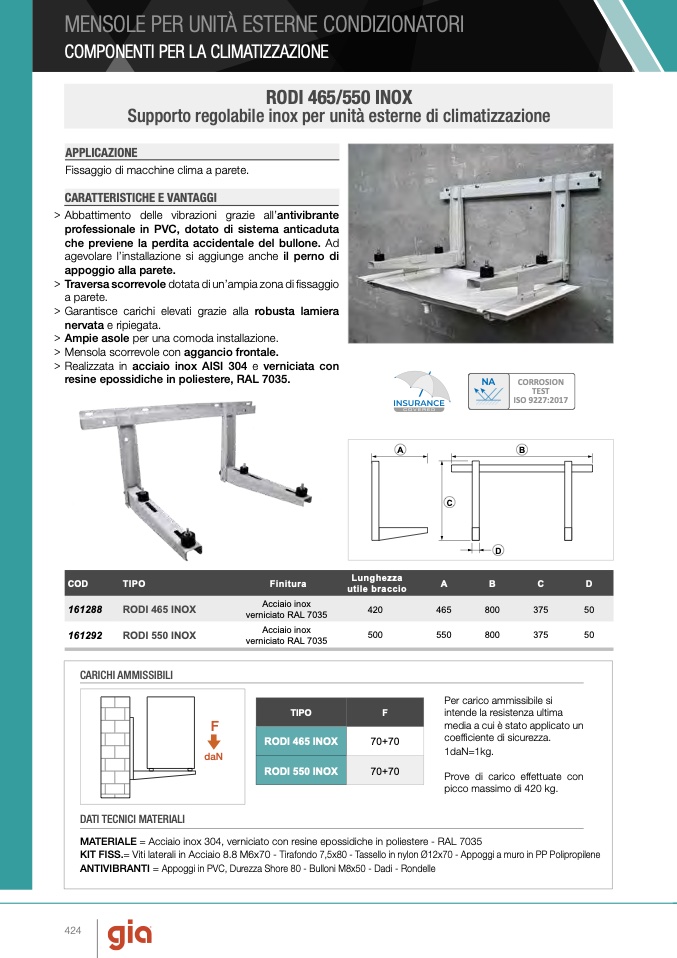 MATERIALE = Acciaio inox 304, verniciato con resine epossidiche in poliestere - RAL 7035