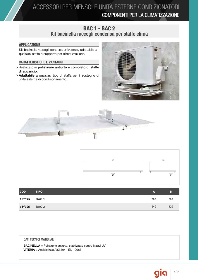 qualsiasi staffa o supporto per climatizzazione.