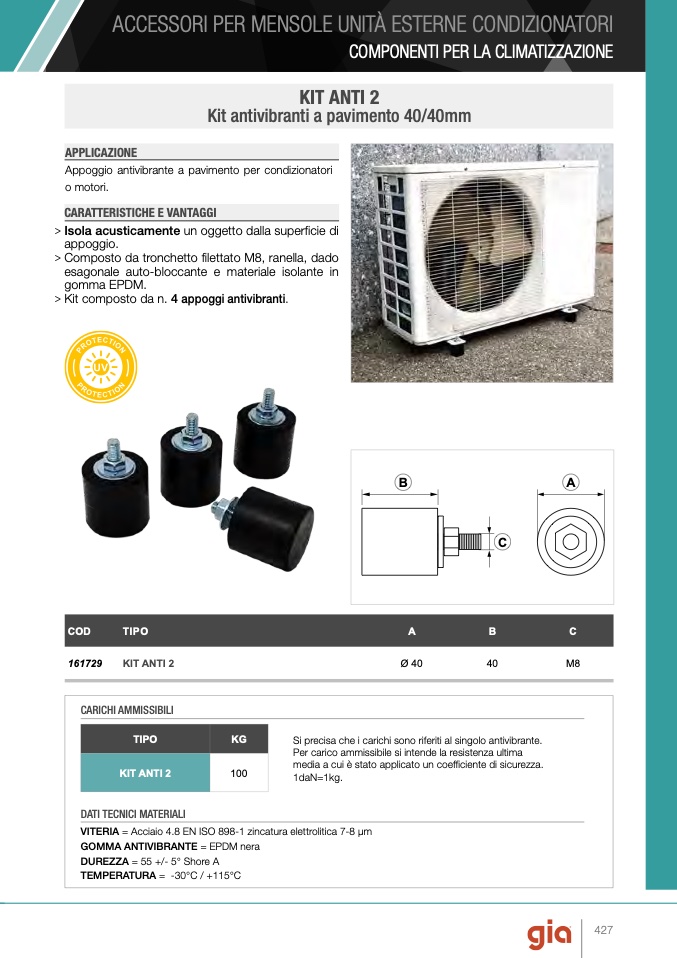 Si precisa che i carichi sono riferiti al singolo antivibrante.