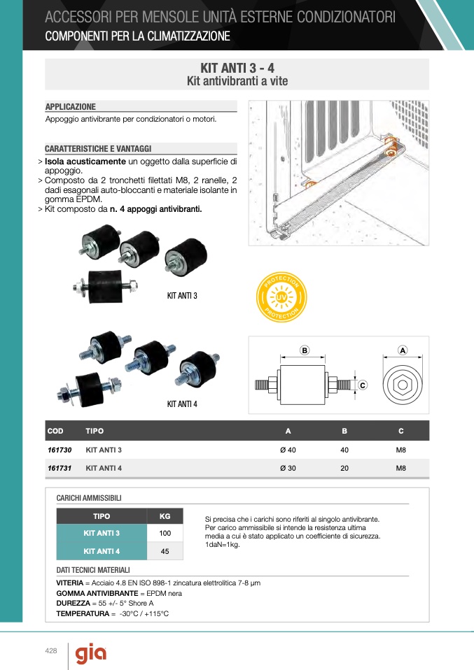 > Kit composto da n. 4 appoggi antivibranti.