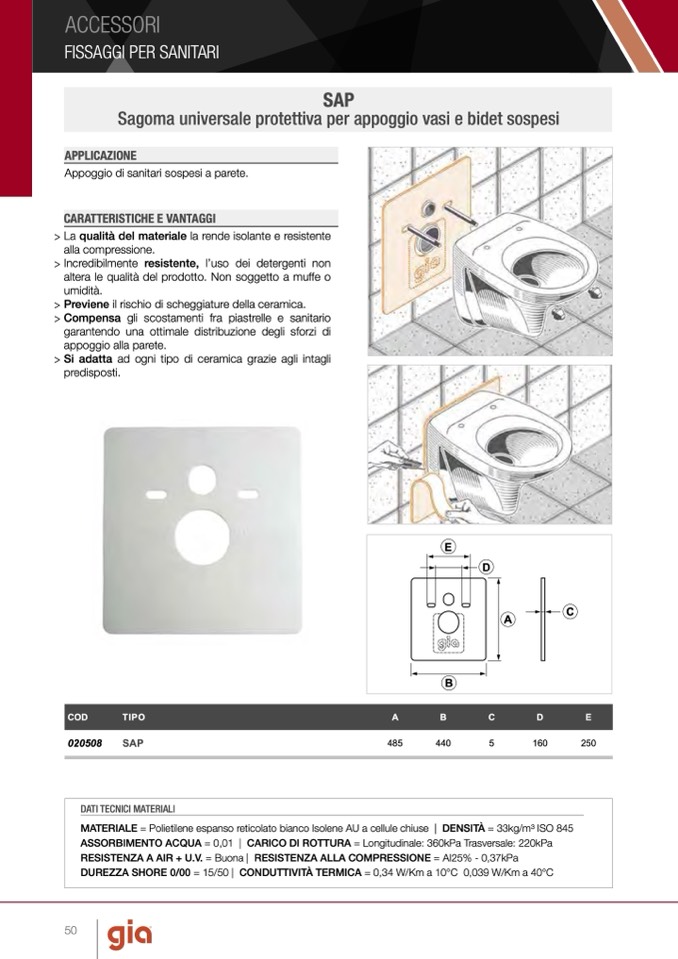 ASSORBIMENTO ACQUA = 0,01 | CARICO DI ROTTURA = Longitudinale: 360kPa Trasversale: 220kPa